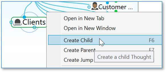 - Or, right-click the thought, then click the Create Child, Create Parent, or Create Jump command