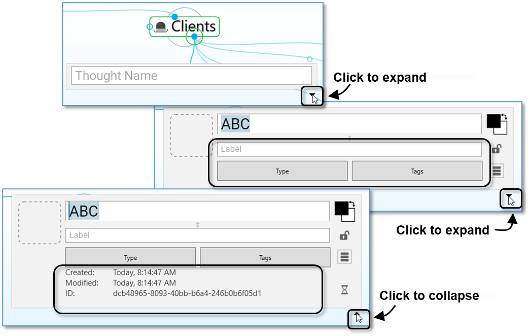 - To hide the thought’s details, click the up-arrow in the bottom-right corner