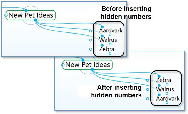 The thoughts will appear in the order of Zebra, Walrus, Aardvark (without the periods or numbers), rather than alphabetically. You can always delete or revise the numbers in the Thought Properties dialog box.
