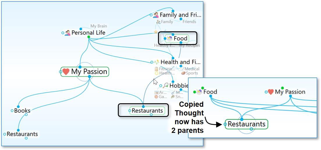 - The copied thought will automatically be linked as a child of the active thought and it will also retain all of its original relationships.