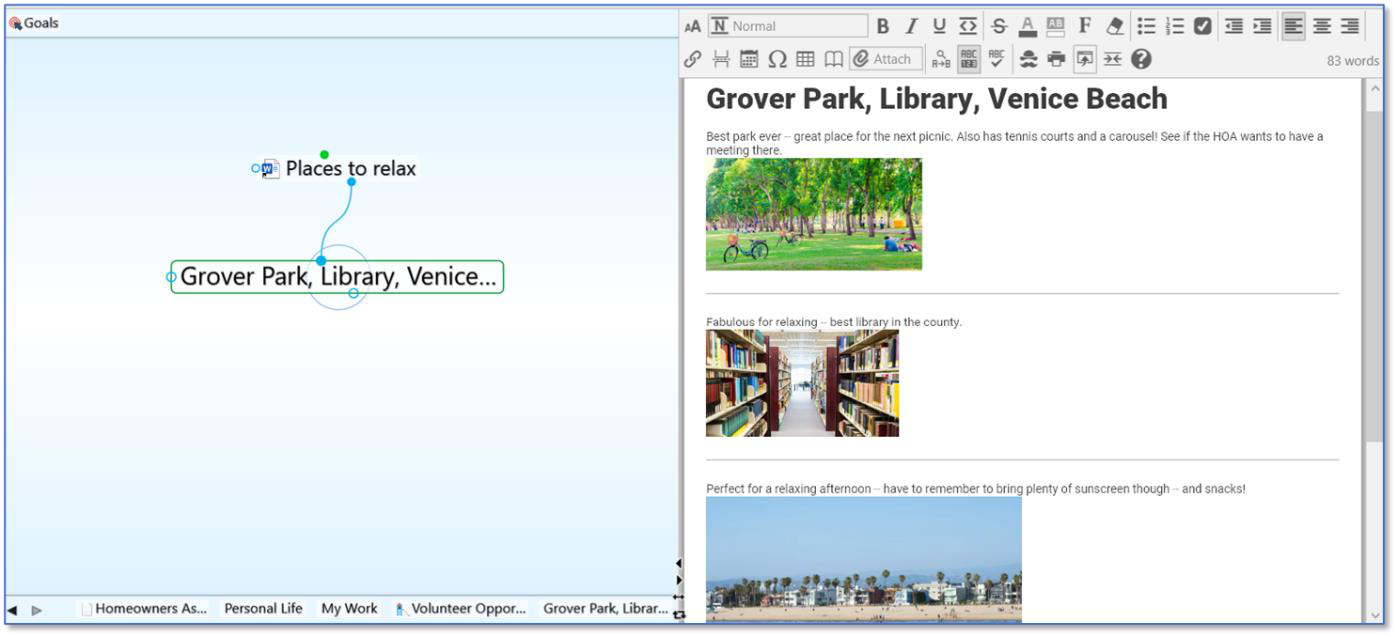 When you activate the new thought, you’ll see all content that was in each of the standalone thoughts. The name of the new thought becomes a combination of the formerly separate thoughts, in alphabetical order.