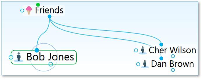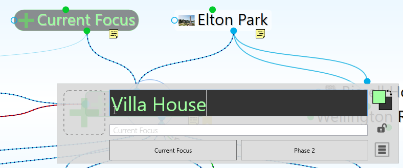 Links between thoughts are normally unnamed. You can name a link by giving it a “label.” Just like thoughts, links can have Types, notes, and Attachments. You can control the way they appear in order to clarify relationships or just to create a more pleasing view of your brain, based on your personal preferences. You can also manipulate links in order to add or change relationships between your thoughts.