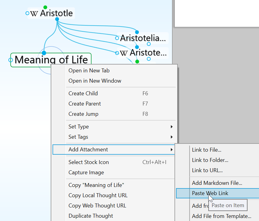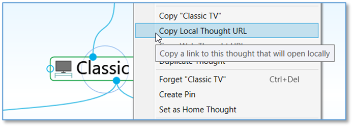- And, using the Thought Properties Actions Menu button (three horizontal
