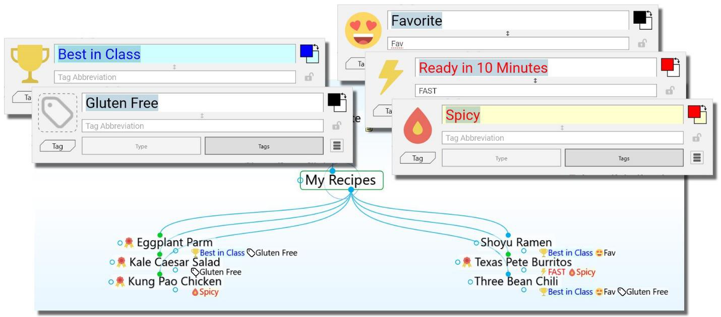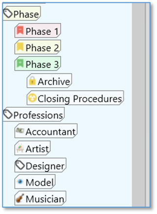 Tags can be organized under each other so they are easier to organize, navigate and apply.