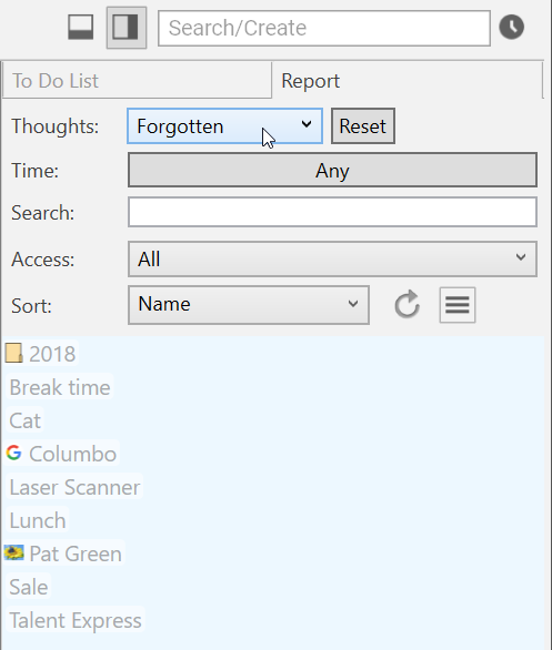 The Forgotten thoughts selection allows you to quickly view and access any thoughts you have forgotten in a brain.