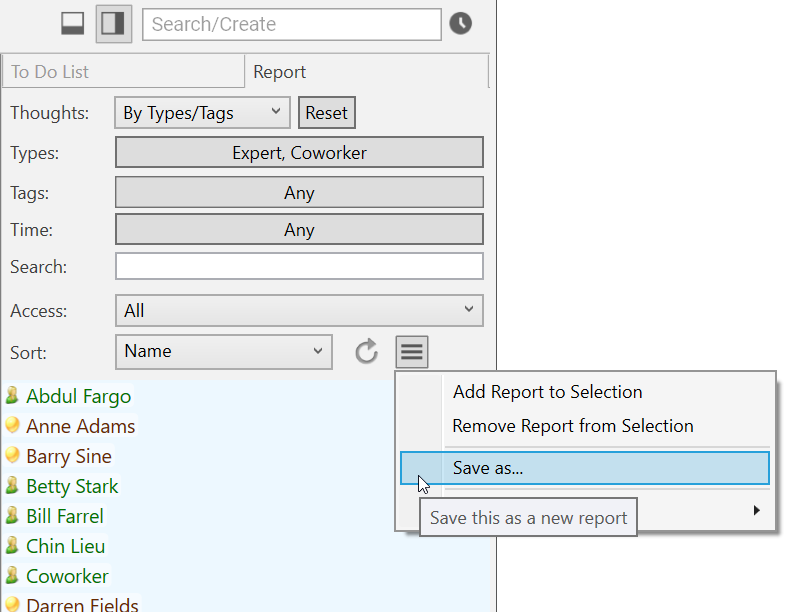 Reports are an excellent way to manage large groups of thoughts in your Brain.