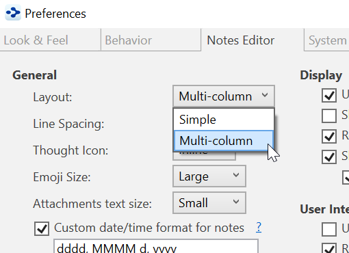 To show the expanded toolbar even if the content area isn’t very wide, deselect the “Use compact toolbars for Notes” check box in the