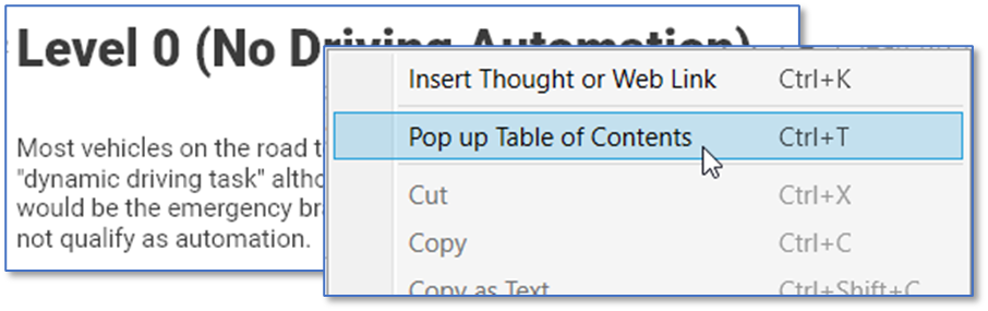 Click on any thought name in this display to navigate to that thought. Right click on any thought name to open a context menu with the following options for modifying the relationship between the active thought and the selected thought: