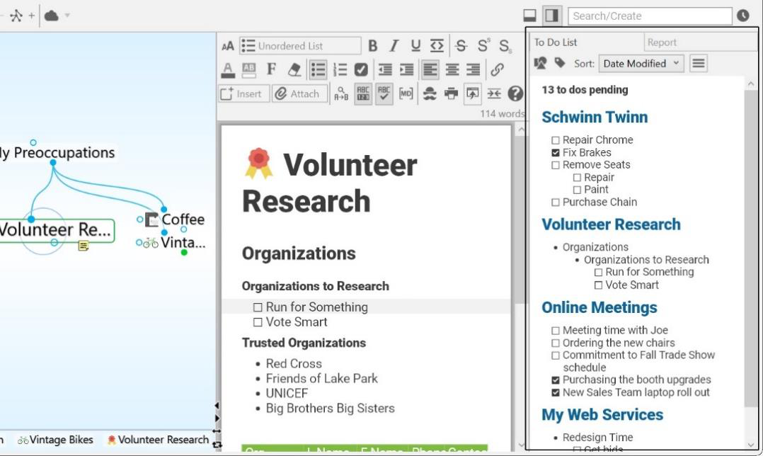 You can think of the parts of TheBrain’s content area as personal assistants who are ready to help when asked. You can give any of them the day, week, or year off if you choose not to use their services, but they’re all standing by, ready to assist you—-at the click of your mouse.