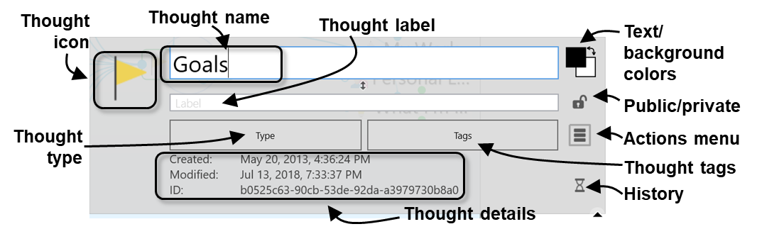 Right-click the thought, then click Show Thought Properties on the context menu, or
