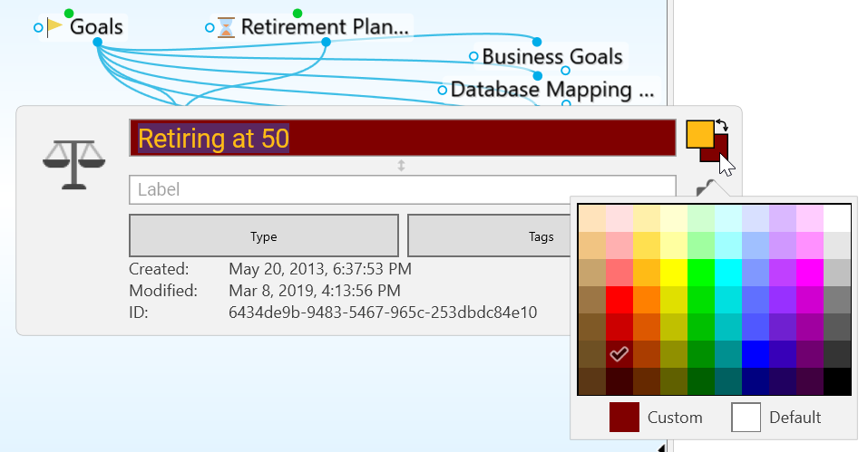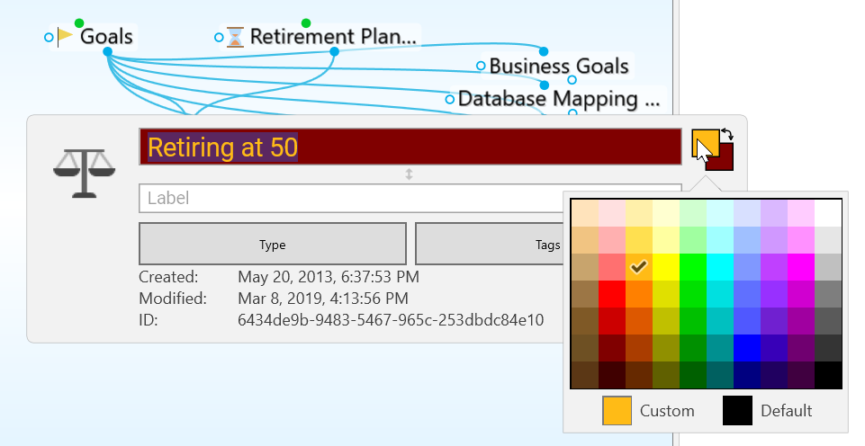 You can change the colors of thoughts and links globally using the Brain Theme dialog box (see the Customizing a Brainâs Appearance section on page