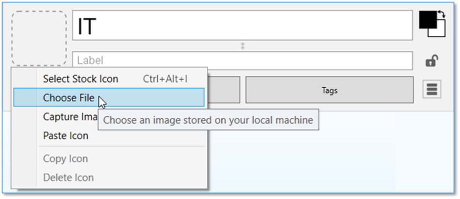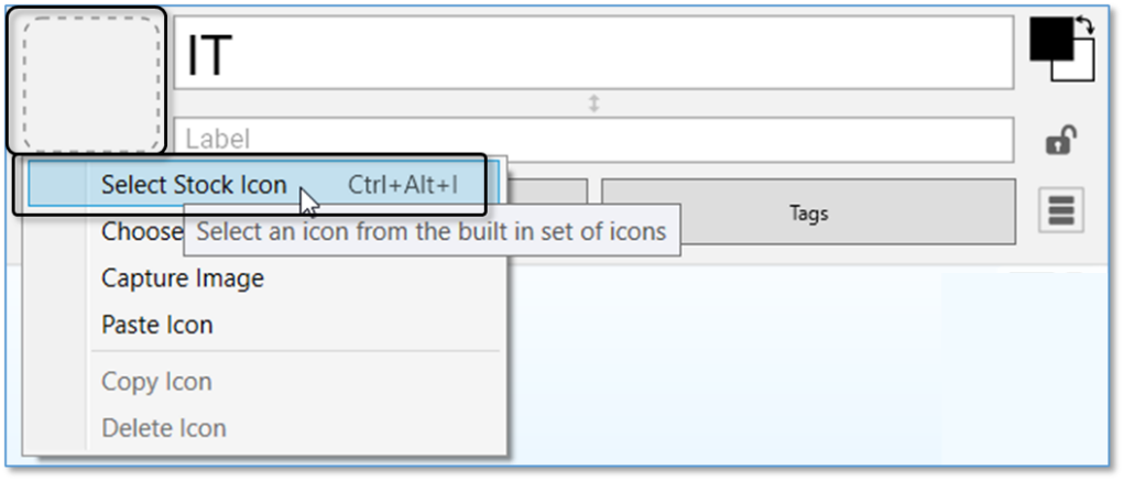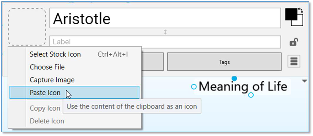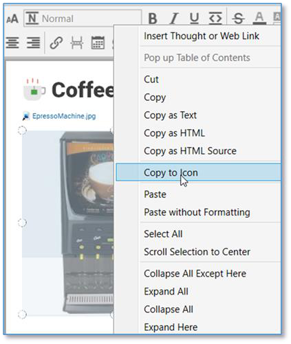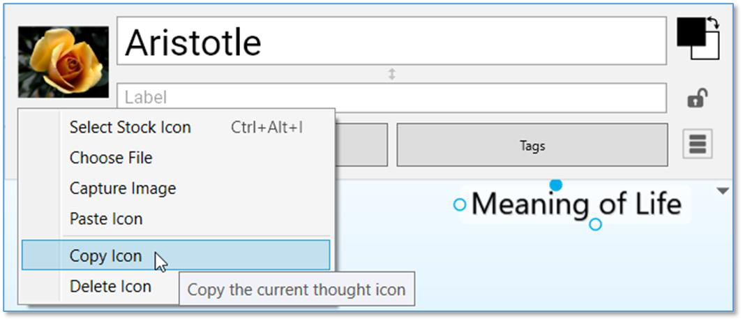 To create a thought icon from an image in the Content Area: - Click the image to select it, right-click it, then click the Copy to Icon command in the context menu.