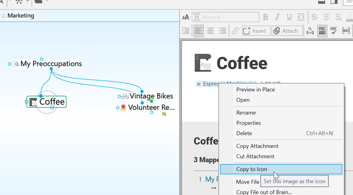 - Right-click the attachment, then click the Copy to Icon command in the context menu.