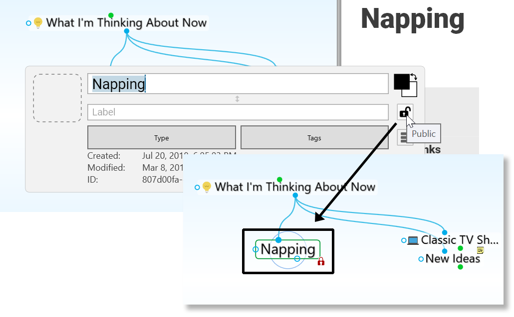 - And, using the Thought Properties Actions Menu button (three horizontal