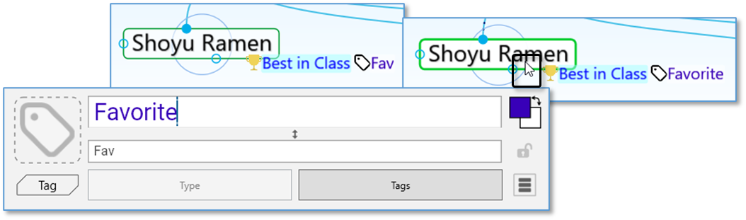 You can easily move a thought through a project cycle or simply re-classify its tag attributes. To quickly replace a thoughtâs tag: