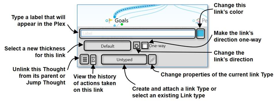 Just as each thought has its own Thought Properties dialog box, each link has its own Link Properties dialog box.