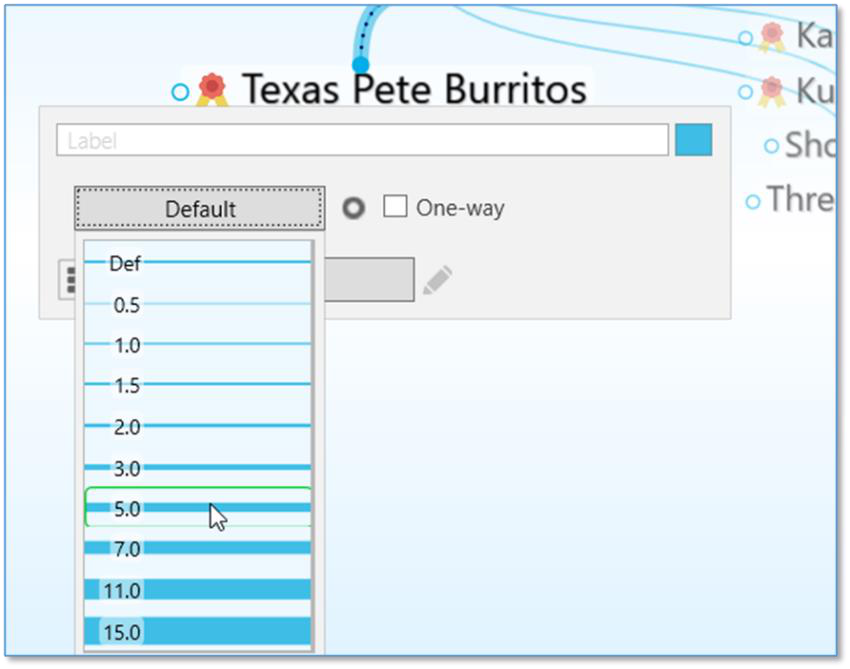 You might want to widen links to illustrate the strength of particular relationships between thoughts.
