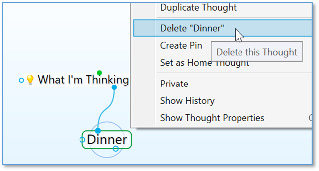 - Hold down the Shift key (for Windows)/Alt key (for Mac) as you right-click the thought to be deleted. The context menu will be displayed, showing the Delete thought name command in place of the Forget thought name command.