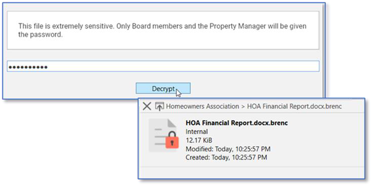 - Whenever someone attempts to open the file, they’ll see the prompt you entered. They will have to enter the correct password, then click the Decrypt button. After that the file can be opened by clicking on it.
