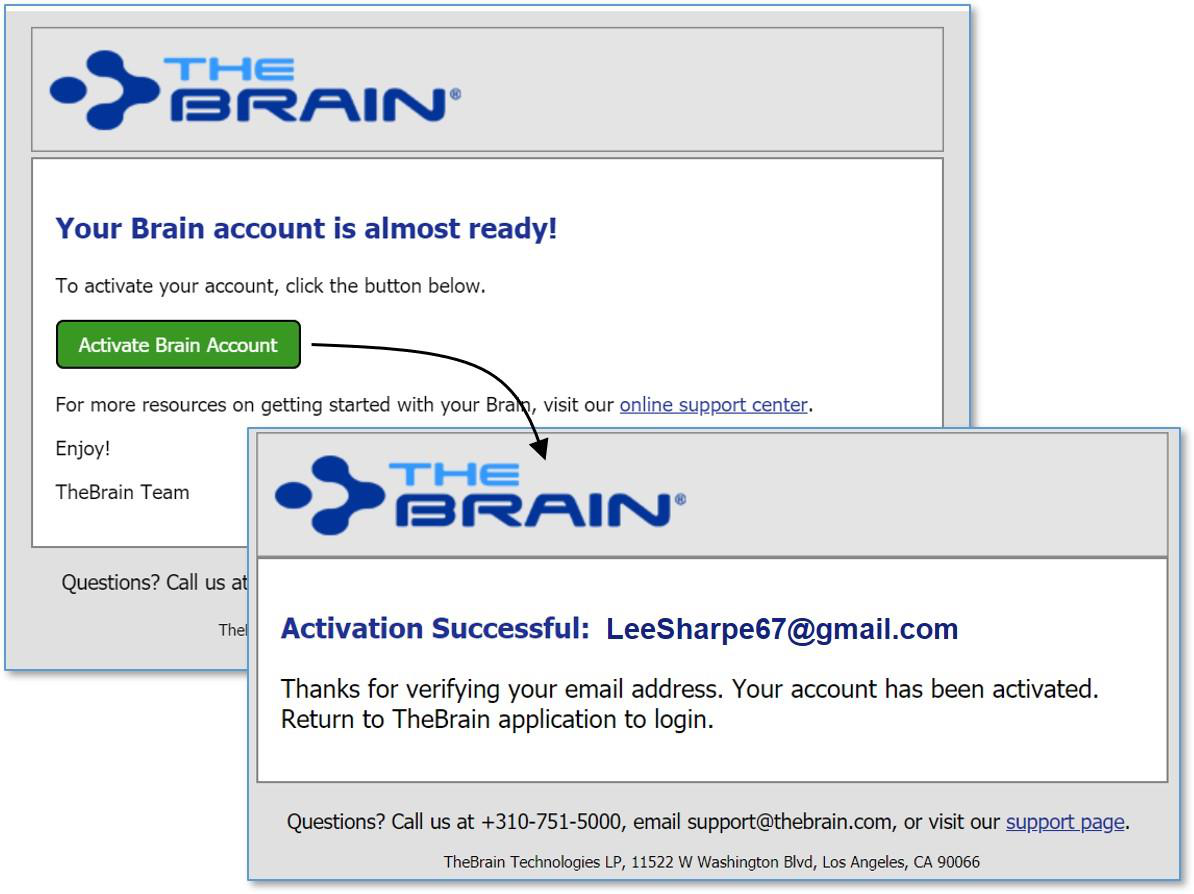 After you click the Create Account button, TheBrain will send an email to the address you specified.