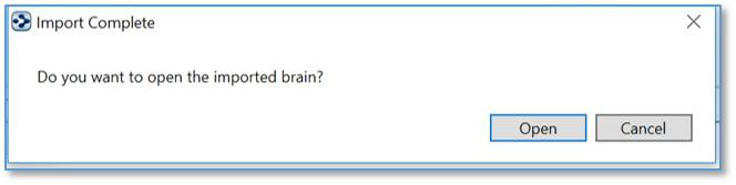 - When TheBrain has finished importing, you will see the following dialog box. Click the Open button to open the brain you just imported in a new tab of TheBrain window.