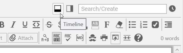 - Unless it is already open, display the Timeline by clicking the Timeline command in the View menu or the Timeline button to the left of the Search box.