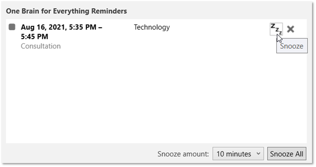 From the Reminder window, you can snooze for a designated amount of time or