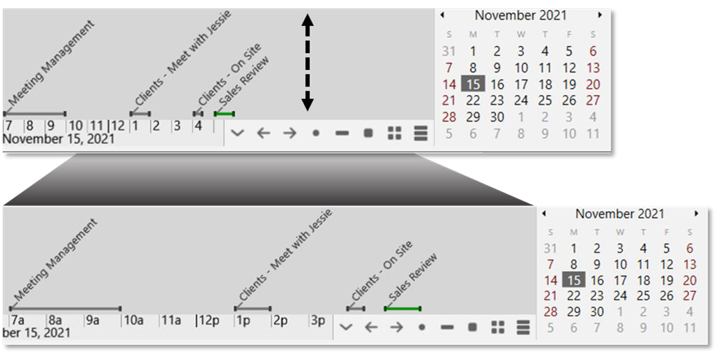 Your brain has its own built-in Calendar. You can access it from the content area or the Timeline View to add and modify events and integrate them with your thoughts. You can view your Calendar a day, week, month, or year at a time.