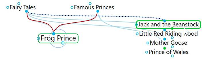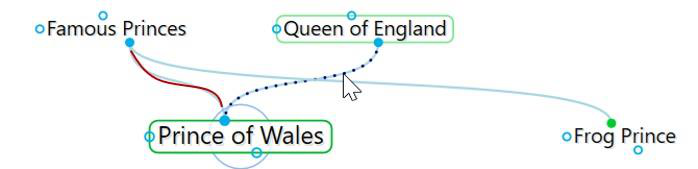 Let’s look at an example, say, the Queen of England and asparagus. You have a thought called Queen of England. One of its child thoughts is Prince of Wales, which has a parent thought—Famous Princes—that is also linked to the story of the Frog Prince.