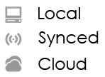 Figure 22. Icons Indicating Local, Synced, or Cloud