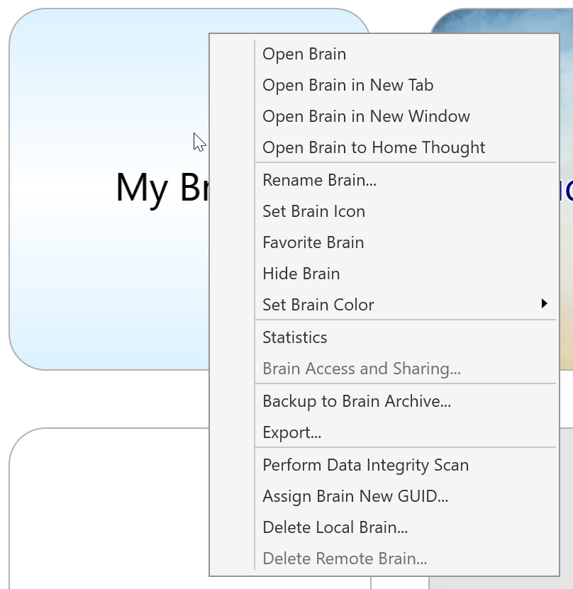 Managing Brains Using the Context Menu