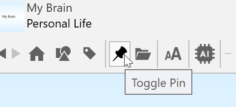 - Use the Toggle Pin button in the main toolbar to create a pin for the Active Thought or right-click the thought for which you want to create a pin, then click Create Pin on the context menu