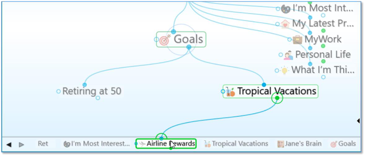 open a brain it will appear in a separate tab. Switch from brain to brain instantaneously by clicking its tab. All tabs and their states are automatically saved and restored when you quit and restart.