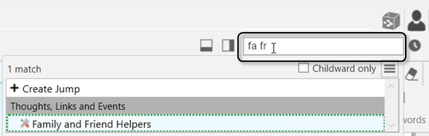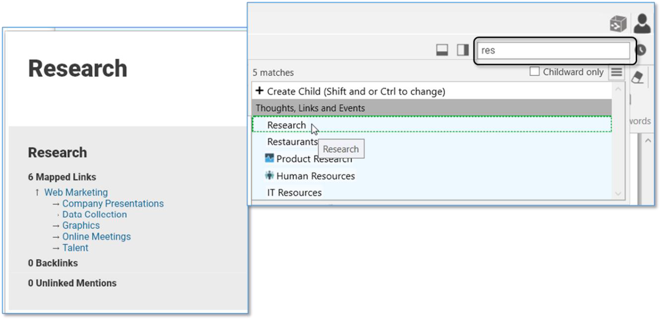 you’re searching for and activate the related thought. You can easily scan the search results as you type in the Search box. There's no need to click in the Search box, your cursor is always there by default, unless you are actively typing