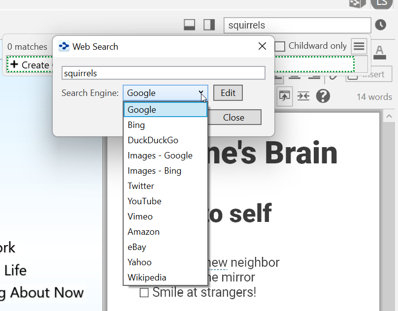 you’re on a neighborhood committee and you’ve volunteered to look into an issue with squirrels. You type “squirrels” in the Search box. No results? Press the F4 key to search the web.