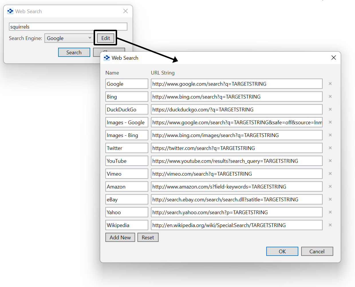 Figure 42. Editing Search-Engine URLs