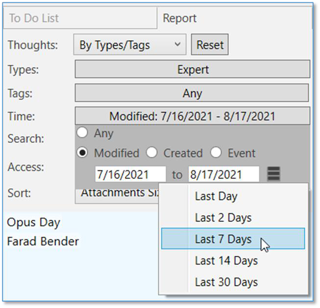 Figure 278. Filtering Thoughts in a Report by Modified Date