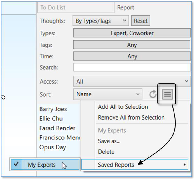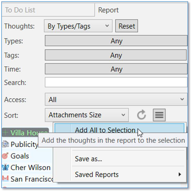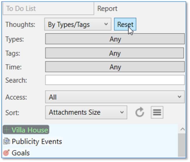 Reports are an excellent way to manage large groups of thoughts in your Brain.