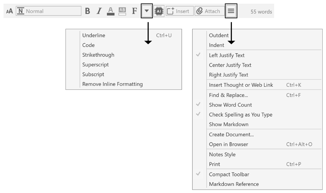 Compact Toolbar and Markdown Reference