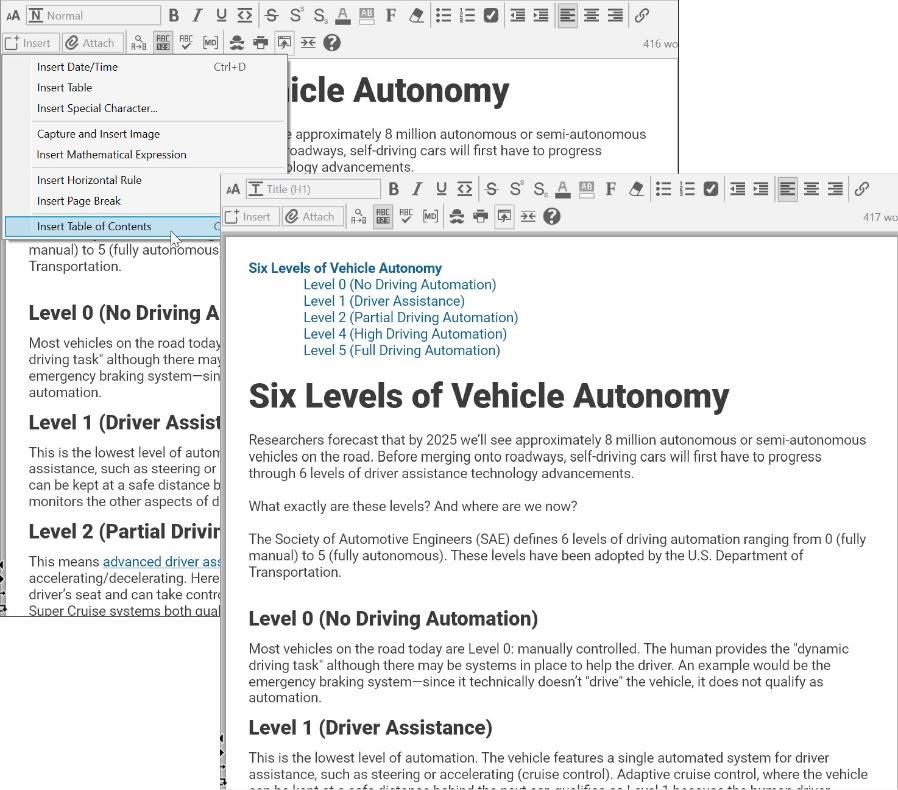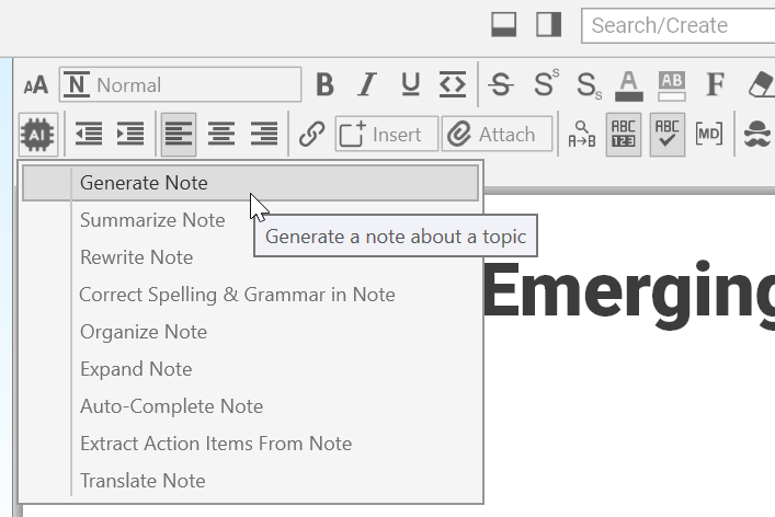 The content area toolbar is quite robustâdonât feel like you have to use every feature for every note. Youâll see many of the tools youâre familiar with from word