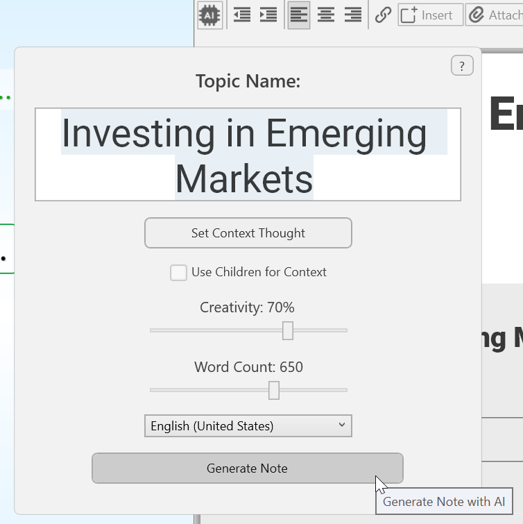 When you hover over the area to the left of the related thoughts, youâll see down- and right-arrows.