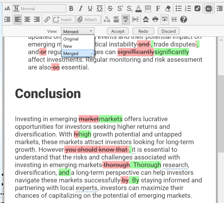 Toolbar-based formatting: Not familiar with markdown? A toolbar that works just like you're used to that will also help you learn the text equivalents.