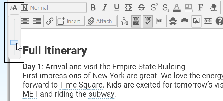 Text Size â Use the text size slider to resize the notes