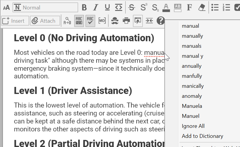 Find and Replace, Show Word Count, Spellcheck as You Type and Show/Hide Markdown