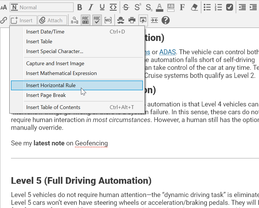 When selecting text in a note, you will have the option to