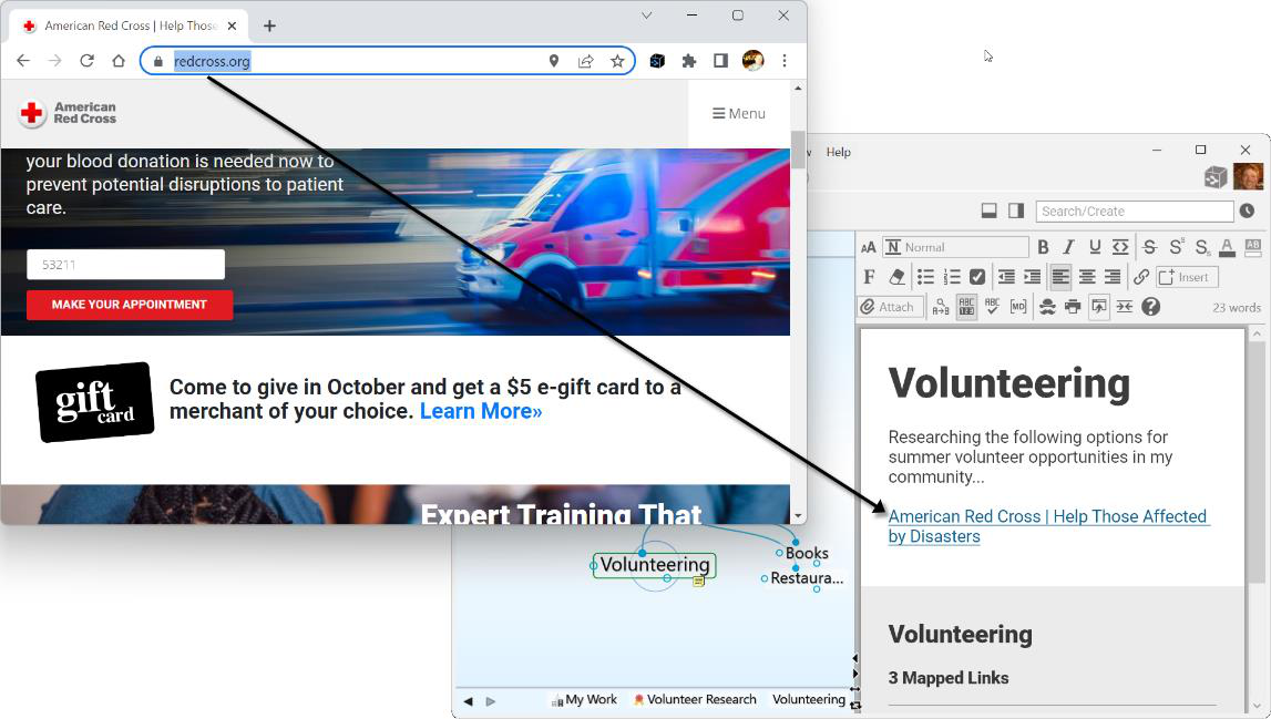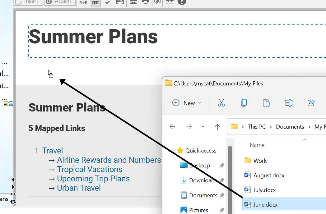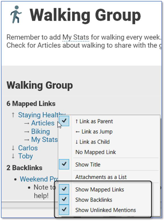 - Right-click in the Notes area, then click Show Mapped Links, Show