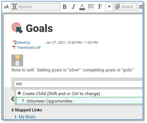 The data in your brain can be aggregated automatically with just a few simple mechanics. When data is aggregated, you can see content from notes about the same subject throughout the thoughts in your brain all at the same time. This ability is powerful and magical!
