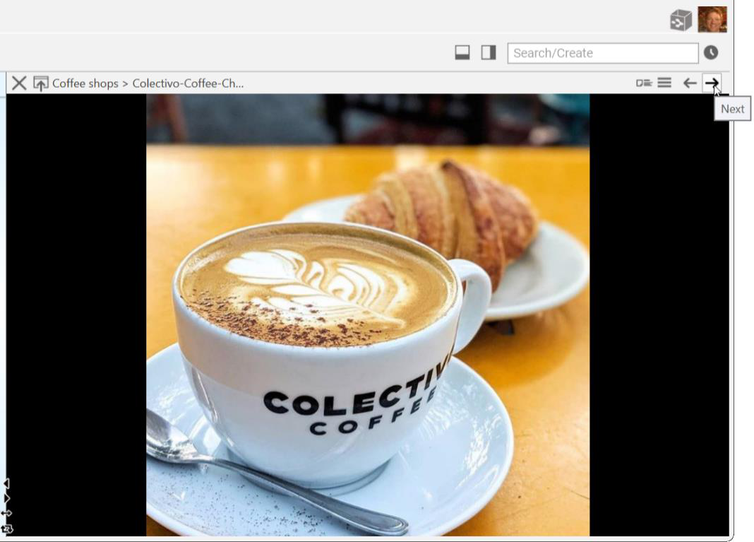 Unlike earlier versions of TheBrain software, the content area toolbar is always on display when the content area is open, but does not have your cursor focus.
