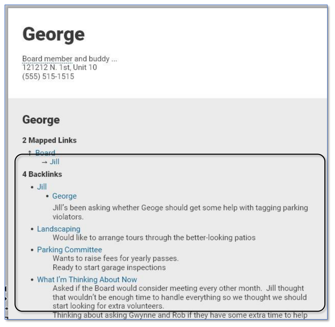 - In this scenario, the backlink content on the George thought will display all text until it comes to the next #3 (Heading) formatted text.