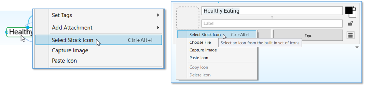 - Right-click the thought, then click Select Stock Icon or open the Thought Properties dialog box, click the thought icon box, then click the Select Stock Icon command.